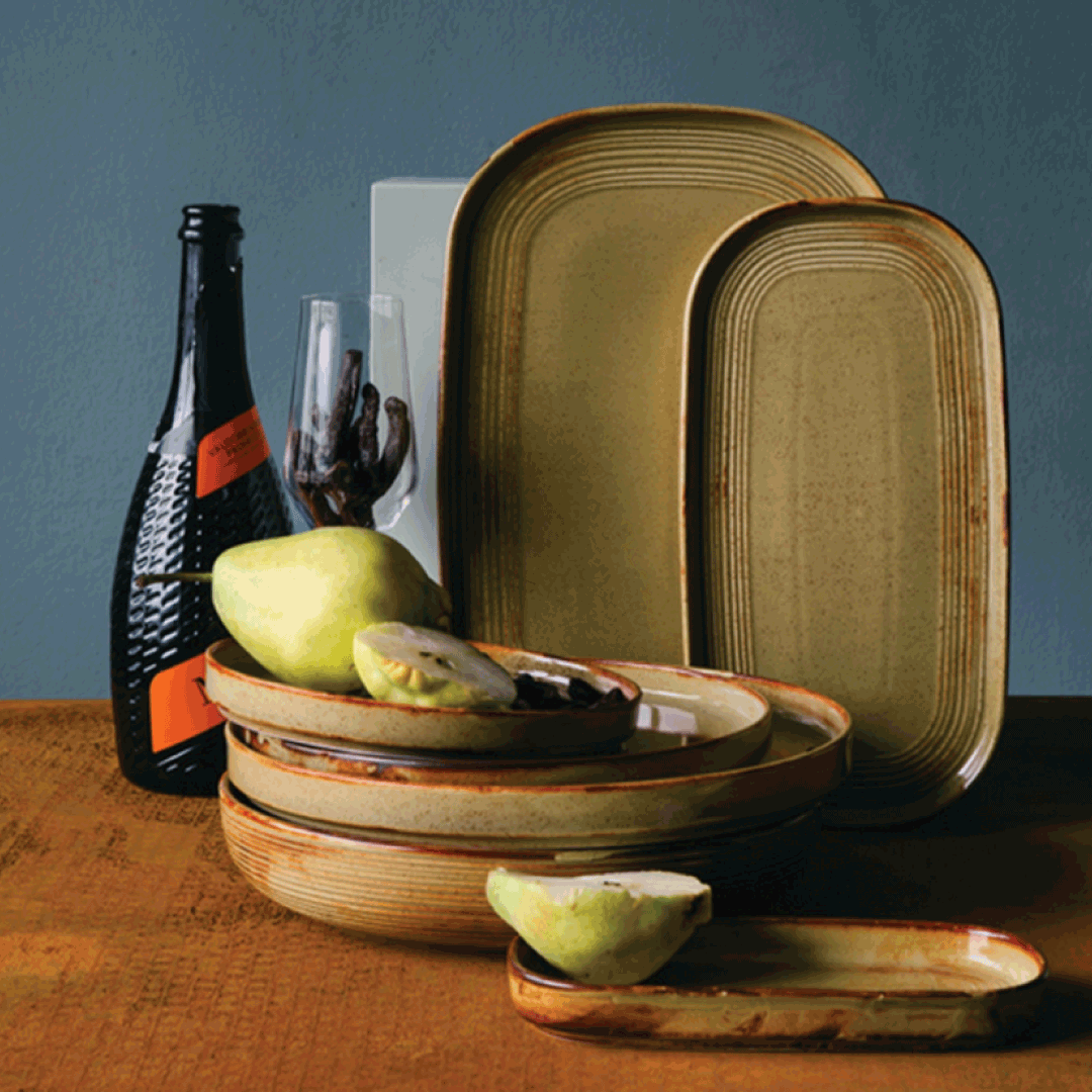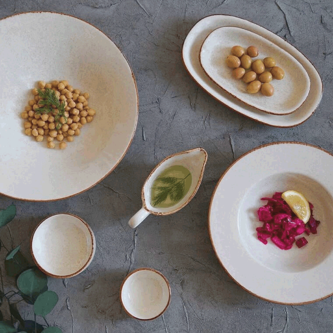 By bones collections, such as Helix Gleam, Mises, Balance, and Edera, blend clean aesthetics with reactive glazes and modern textures. From flat plates to deep bowls and trays, each piece is designed for both performance and visual impact.