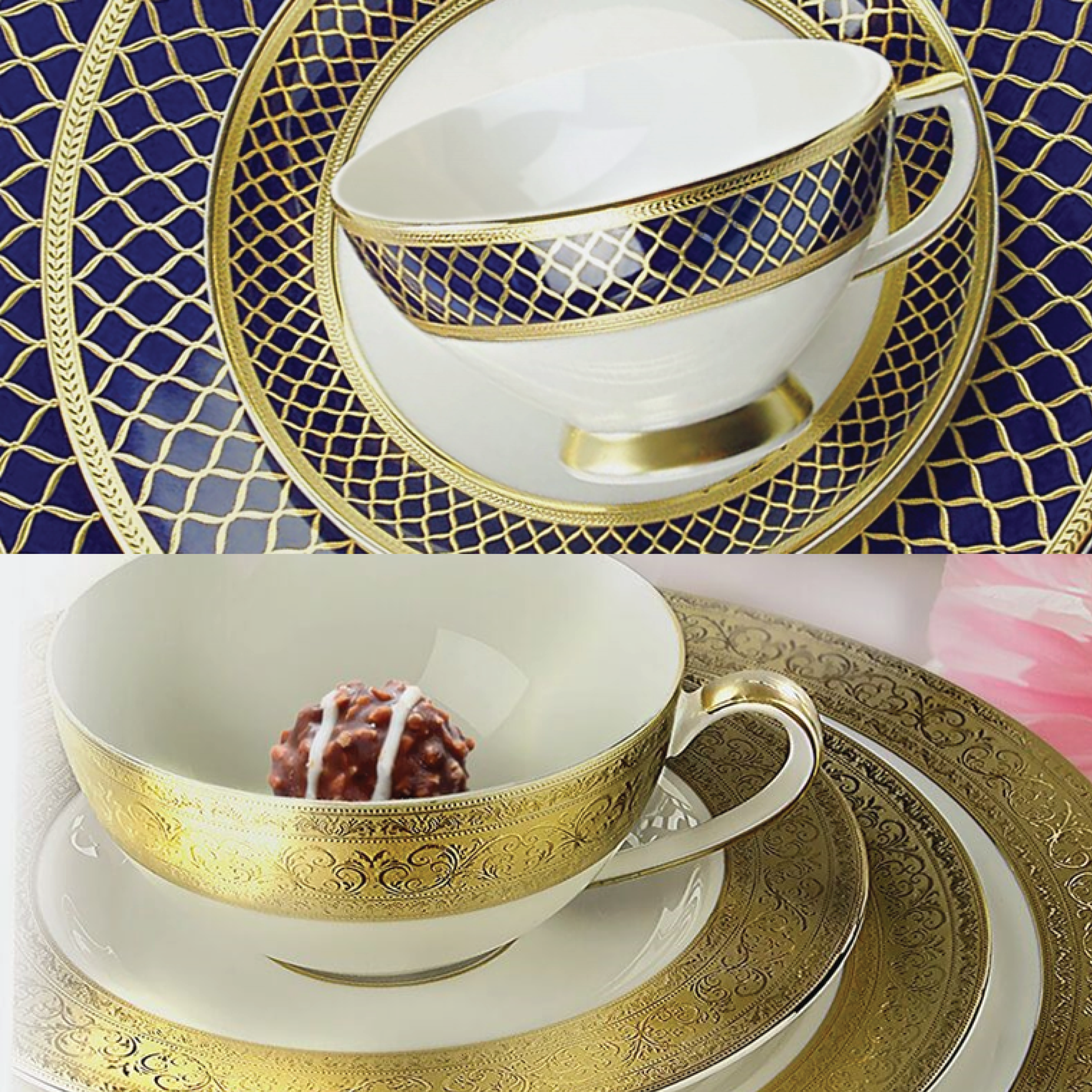 Made in Germany, Falkenporzellan is a premium porcelain manufacturer based in Selb and Bärnau, Bavaria, a region renowned for centuries of porcelain craftsmanship. Founded in 1993, the brand combines traditional techniques with modern production to deliver world-class tableware. Known for its high-quality materials and expert artistry, Falkenporzellan specializes in hand-decorated porcelain with real gold, platinum, and raised (“raisen”) detailing. It serves a distinguished clientele including 5- star hotels, Michelin-starred restaurants, royal houses, embassies, and VIP venues.