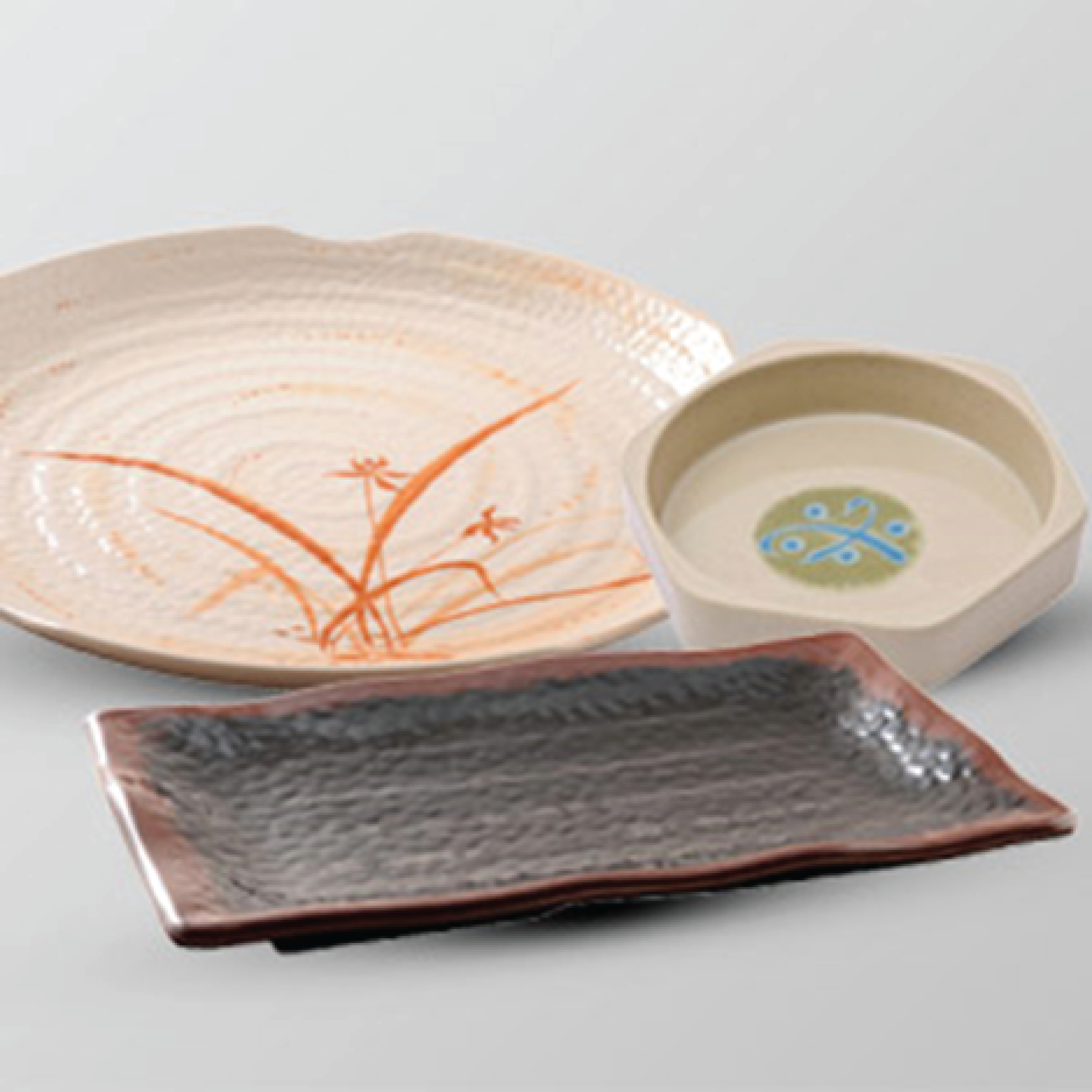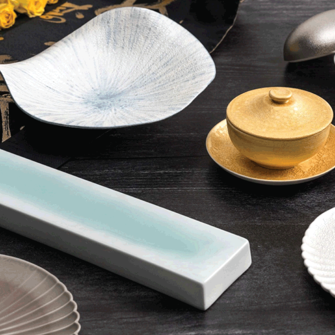 Korin offers a wide range of Japanese plates, from minimalist Tenmoku ceramics to floral glass collections. Its Durable Collection features alumina- rich porcelain fired at high temperatures for extra strength.