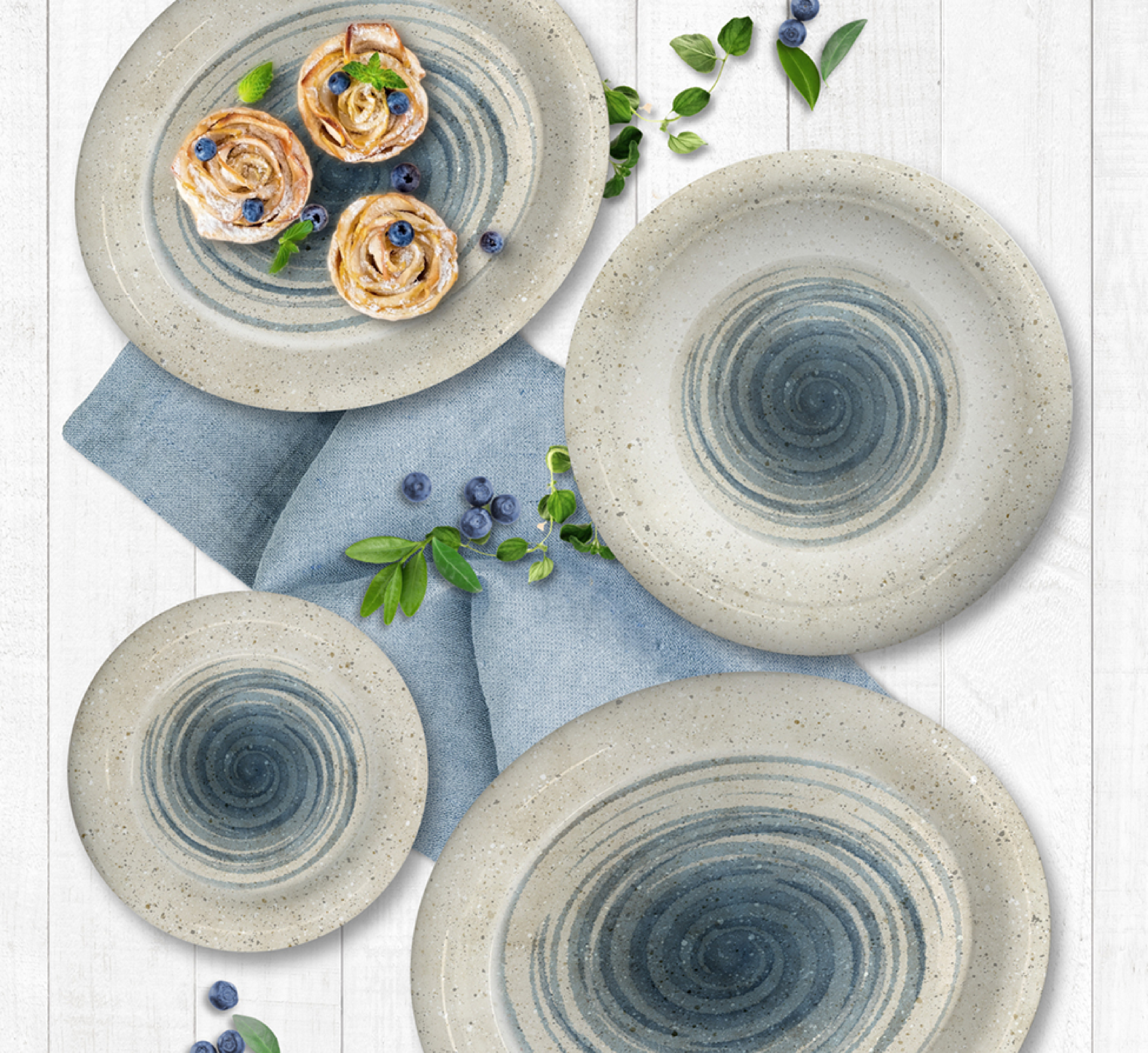 Known for its pizza plates, dinnerware, and decorative collections, Saturnia combines industrial production with artisan-level refinement. Their porcelain is alumina-enriched, chip-resistant, and safe for ovens, microwaves, and dishwashers. Signature collections include Napoli, Tivoli, Tokyo, and themed lines like Lemon and Alcazar. Saturnia's plates are especially popular in pizzerias for their heat retention and visual appeal. All products are built to endure the high demands of restaurants while maintaining a refined Italian style.